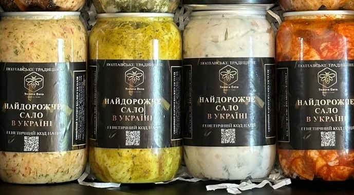 ТМ «Найдорожче сало в Україні» почала свою роботу ще до повномасштабного вторгнення. Сьогодні полтавське виробництво випускає близько тисячі банок сала, які можна придбати в декількох магазинах Полтави, а також у Хмельницькому та Ужгороді.
