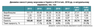 Резкое повышение температуры в апреле 2018 года привело к бурному росту спроса на холодный десерт и его производство в этом месяце составило около 20 тыс. тонн. Этим объясняется большой прирост объема рынка по сравнению с началом прошлого года. В дальнейшем ожидается выравнивание показателей и выход на итоговый уровень годового роста в 5-10%.