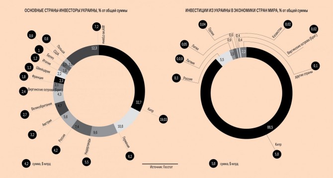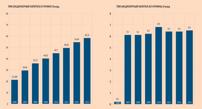 Если до 2010 г. накопленные прямые иностранные инвестиции украинских предпринимателей в акционерный капитал только росли (до $ 6,8 млрд), то потом лишь снижались. Правда, в прошлом году восходящий тренд возобновился, пополнив за год объем накопленных ПИИ на $ 100 млн. Поэтому нельзя говорить о том, что украинский бизнес полностью отсутствует на глобальном рынке M&A. «Скорее речь идет о цивилизованных странах — на развивающихся рынках украинский бизнес либо не активен, либо делает точечные покупки», — говорит Михаил Умников, управляющий партнер ИК Elliott Capital. Последние сделки по покупке активов украинцами были заключены в сентябре 2013 г., когда горнорудная компания Ferrexpo с активами в Украине, мажоритарием которой является Константин Жеваго, заявила о приобретении стратегической доли в размере 14,4 % в бразильской горнорудной компании Ferrous Resources, работающей в железорудном бассейне Минас-Жерайс. Всего за этот пакет заплатили $ 80 млн. Тогда же компания Calexco S.a.r.l., также связанная с Константином Жеваго, договорилась с австрийской Voestalpine Group о приобретении 38,5 %-й доли международной трейдинговой компании VA Intertrading.