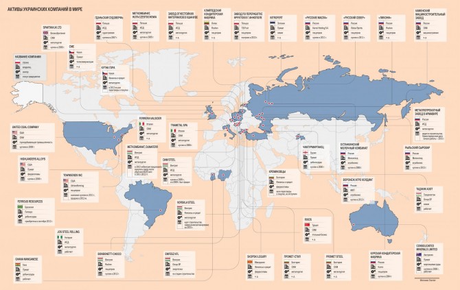 По мнению экспертов, главная причина того, что украинские предприниматели не часто вкладывают деньги в иностранные активы, в политике протекционизма иностранных государств. По мнению старшего аналитика Chatham House Джеймса Роло, за последние десять лет количество мер по защите собственных производителей в мире выросло более чем в девять раз. Тем более что система мер ВТО и антидемпинговых расследований в последние годы потеряла былой потенциал из‑за политических разногласий, и сейчас, возможно, доживает последние дни. В результате украинский бизнес приобретал либо активы по выпуску конечной продукции из собственных ресурсов, располагающихся как можно ближе к рынкам сбыта, либо активы в виде собственно самих ресурсов. Только если первые, по словам Джеймса Роло, касались преимущественно Европы, которая к началу кризиса была главным потребителем продукции украинской металлургии, то вторые стали интересны уже после 2008 г.