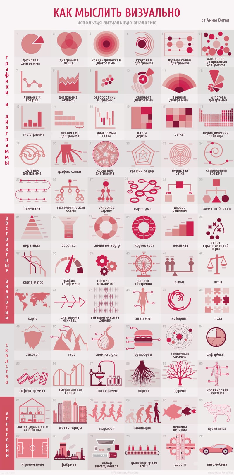 В этой инфографике вы найдете примеры визуализации, которые помогут презентовать идеи с помощью изображений.