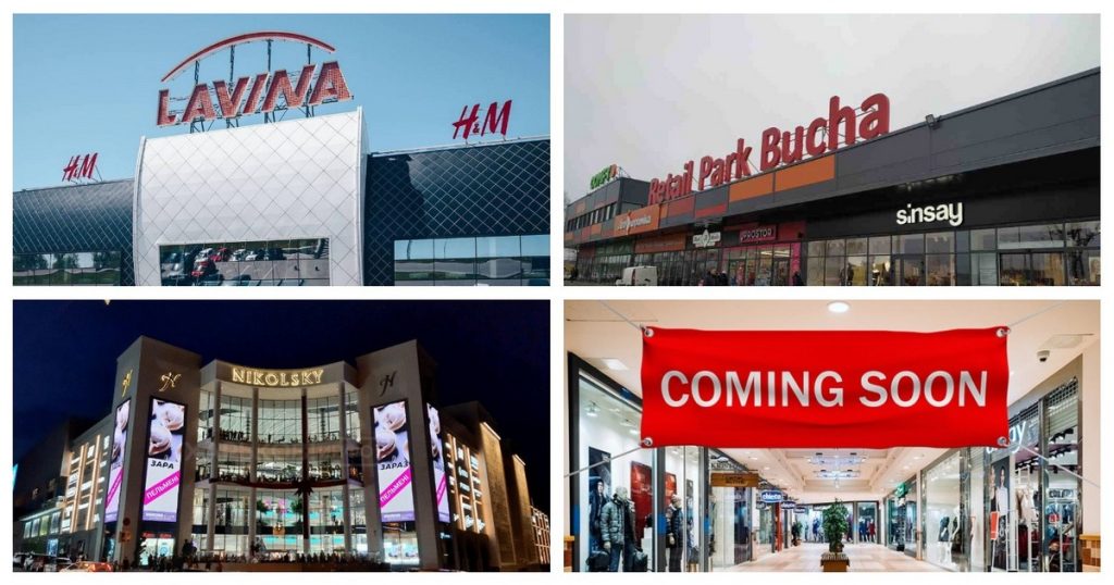 Некоторые поврежденные ТЦ также частично или полностью возобновили работу, например, Lavina Mall (Киев), Retail Park Bucha, Nikolsky (Харьков) и другие.