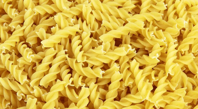 Отмечается, что макароны пяти разновидностей (спираль, ракушка, пружинка, перо, зоопарк — в виде животных) производятся из муки высшего сорта собственного производства.